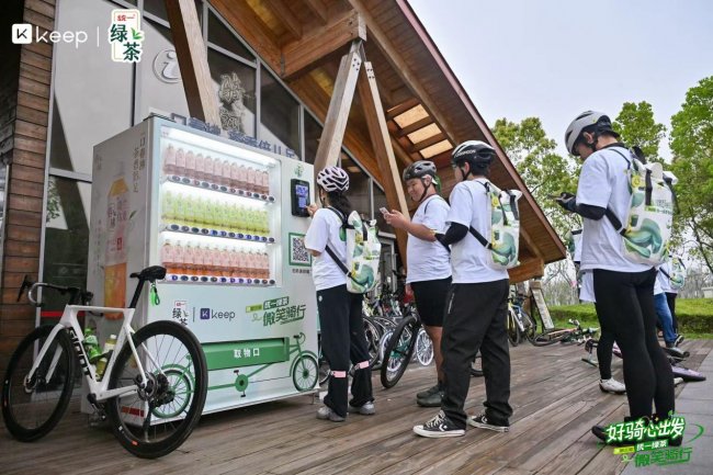 活动全天,多支骑行团分批从主会场出发,沿黄浦江滨江绿道开启城市巡游,骑游团沿途设置了丰富的打卡任务,多条路线的设计兼顾了运动强度与文旅体验,让骑行不再只是竞技,更成为一场城市探索之旅。值得一提的是,为了提升滨江骑行体验的便利性,本次Keep和统一绿茶与浦东新区相关部门合作,在浦东滨江骑行道沿线增设了2处自助维修装置,提供打气筒、基础工具等,方便骑行者即时处理车辆故障。同时,双方联合推出了骑行里程兑换计划——用户使用Keep App在上海滨江骑行每满1公里并完成打卡,即可在指定驿站兑换一瓶春拂。这一举措不仅降低了骑行门槛,也通过即时激励大大提升了市民日常骑行的参与度。